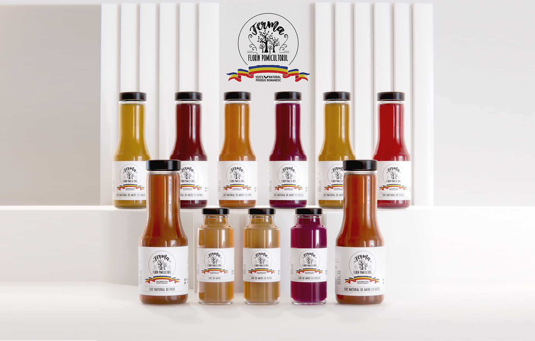 A wonderful collaboration with a family-owned business. The client proudly wants to display the Romanian national flag on the labels, as their products are 100% made in Romania. Therefore, for the contrast ans simplicity, I proposed a monochrome logo. It is a great start, the current labels are generic and I cannot wait for further development of the next projects.